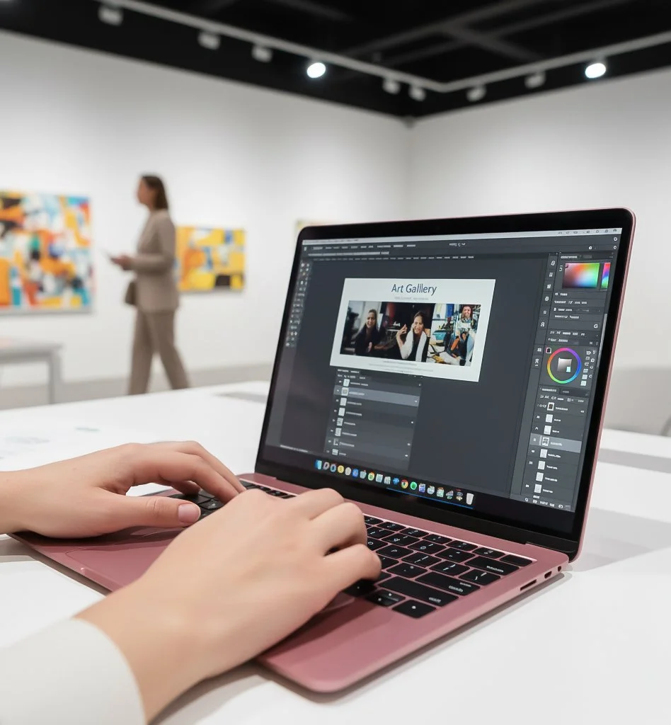 Samarbetet bygger på nära dialog och gemensam utveckling med er som galleri. Genom en stegvis process förfinar vi ert digitala uttryck – tills varje bild, text och kanal återspeglar galleriets konstnärliga vision, värderingar och visuella identitet.
